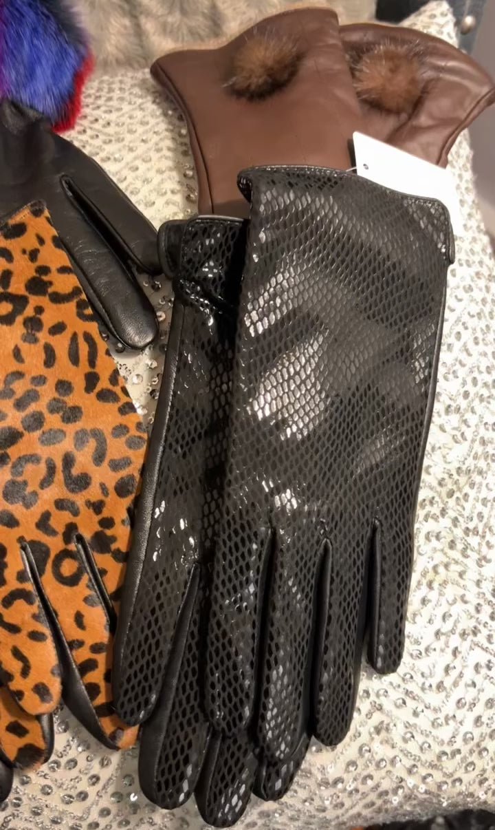 These gloves from the Candice Milan collection are soft, warm and stylish! 100% Supple brown leather with a cashmere lining and a cute fur ball to complement your style.