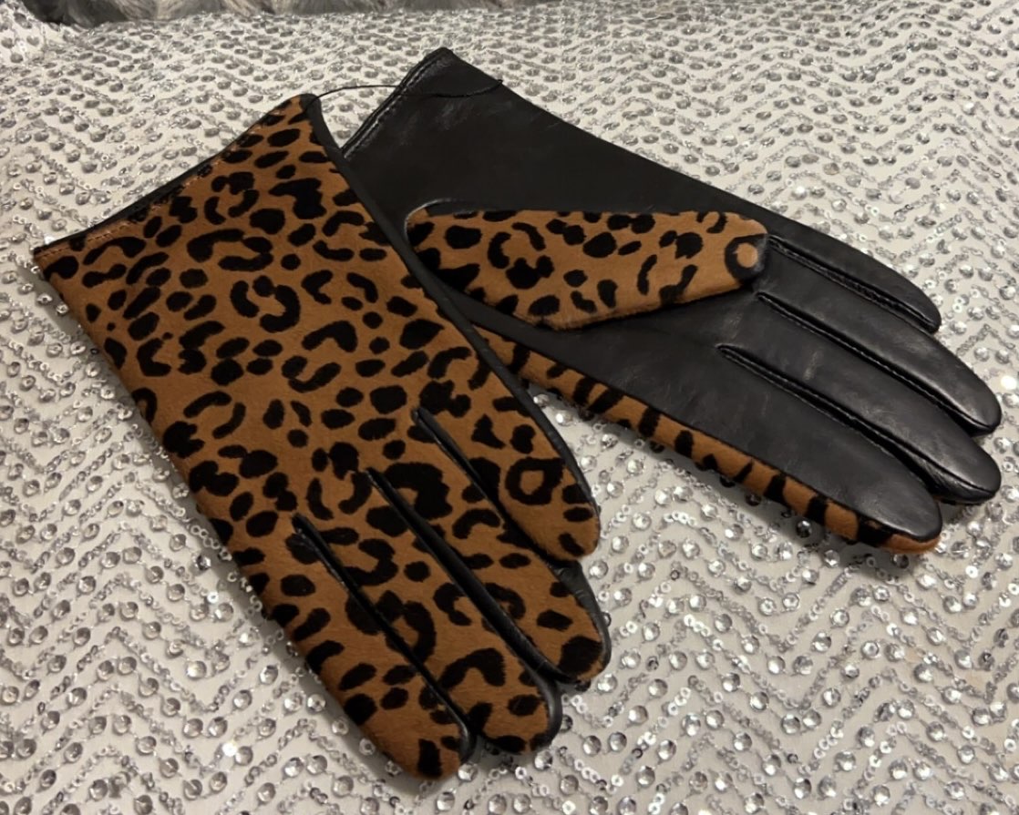 Pretty Kitty Leopard Print Fur and Leather Gloves